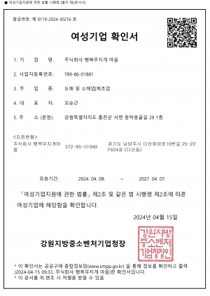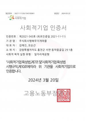 사회적기업 인증서